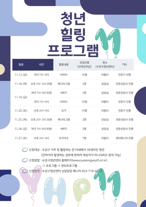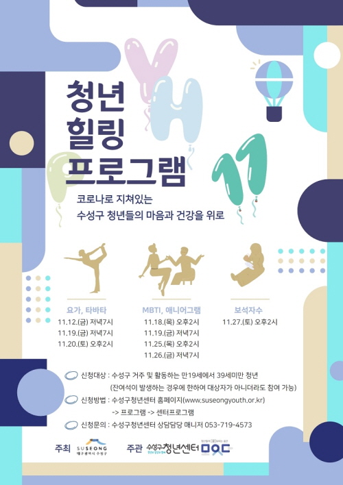 힐링 프로그램이 수성구청년센터에서 진행됩니다.
