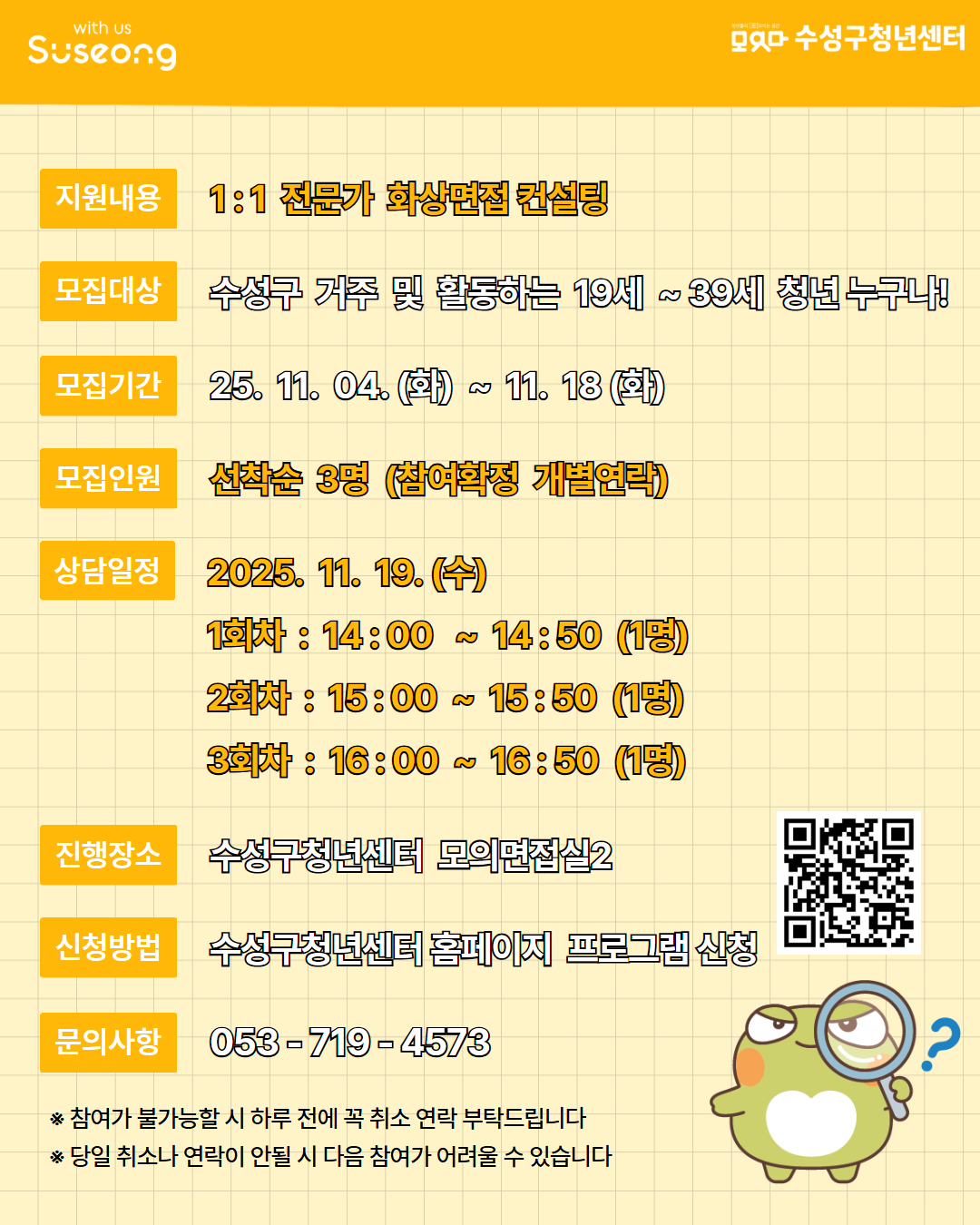 연락처 : (전화번호)053-719-4574, (이메일)suseong_youth@naver.com, (팩스)053-719-4576
