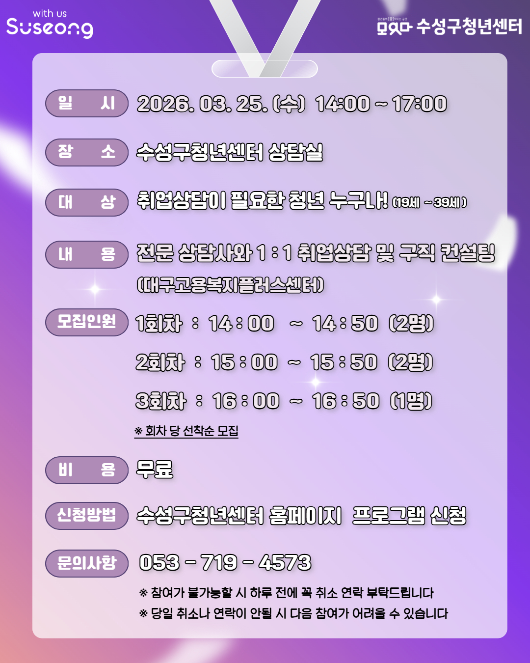 연락처 : (전화번호)053-719-4574, (이메일)suseong_youth@naver.com, (팩스)053-719-4576