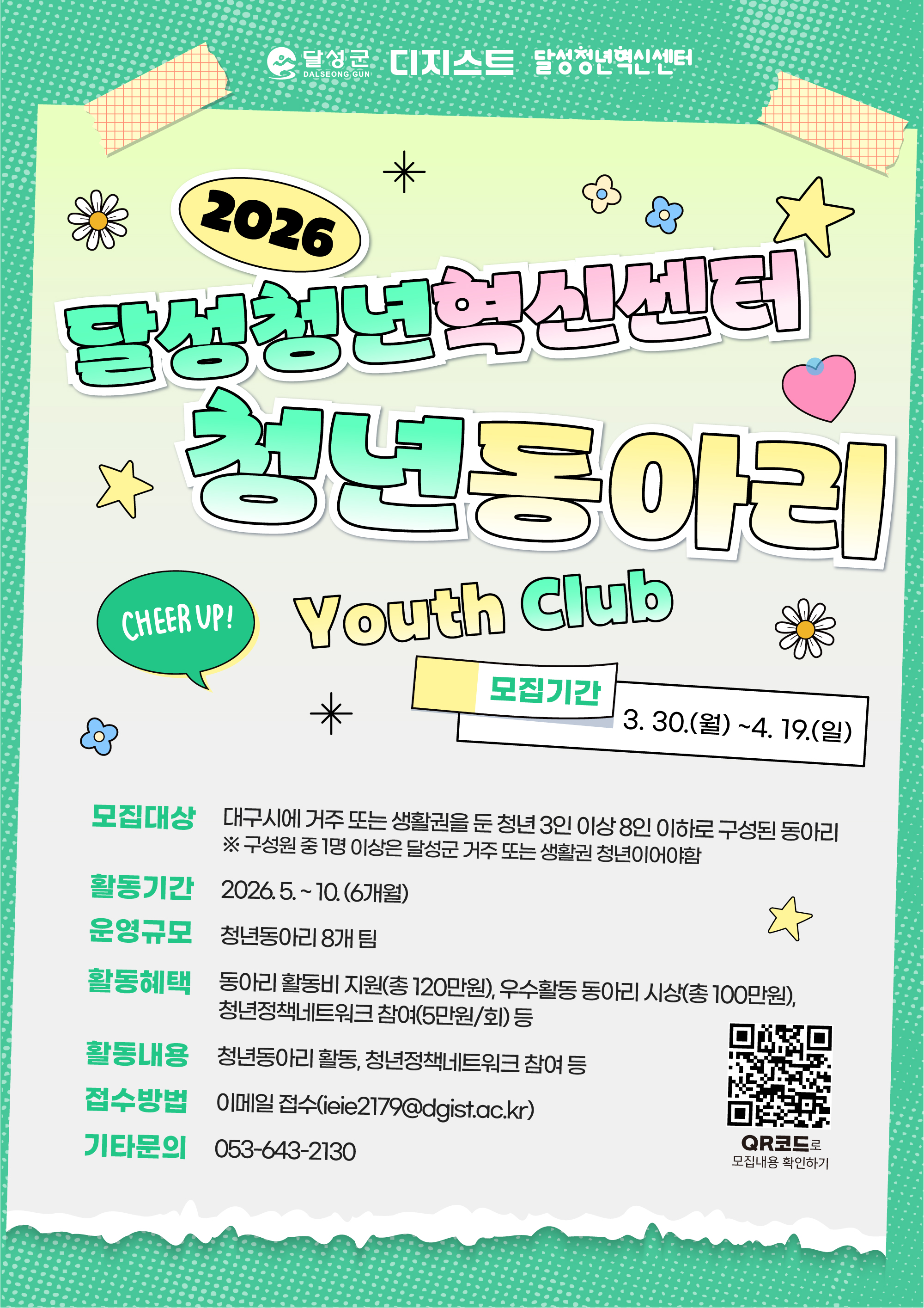 2026년 달성청년혁신센터 청년동아리 모집, 작성자, 등록일시, 조회수, 내용 상세보기