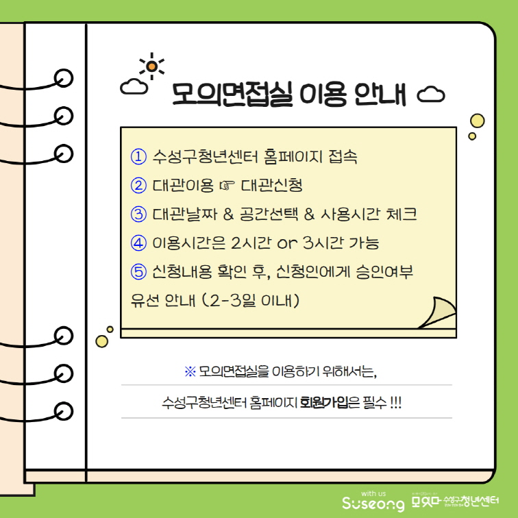 모의면접 연습과 취업&자기개발 관련 인터넷 강의를 무상으로 들을 수 있는 공간은 오직! 수성구청년센터에만 있답니다~