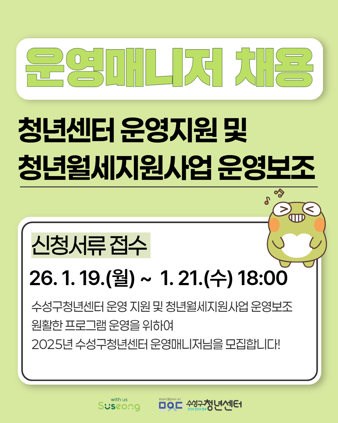 2026년 수성구청년센터에서 아래와 같이 운영매니저 및 청년월세지원사업 운영보조