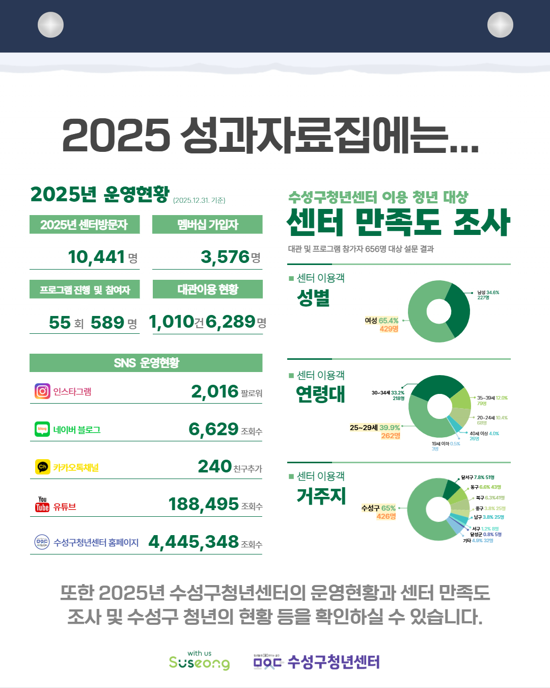 수성구청년센터가 2025년 한 해 동안 추진한 다양한 활동과 사업 내용을 한눈에 확인하실 수 있습니다.