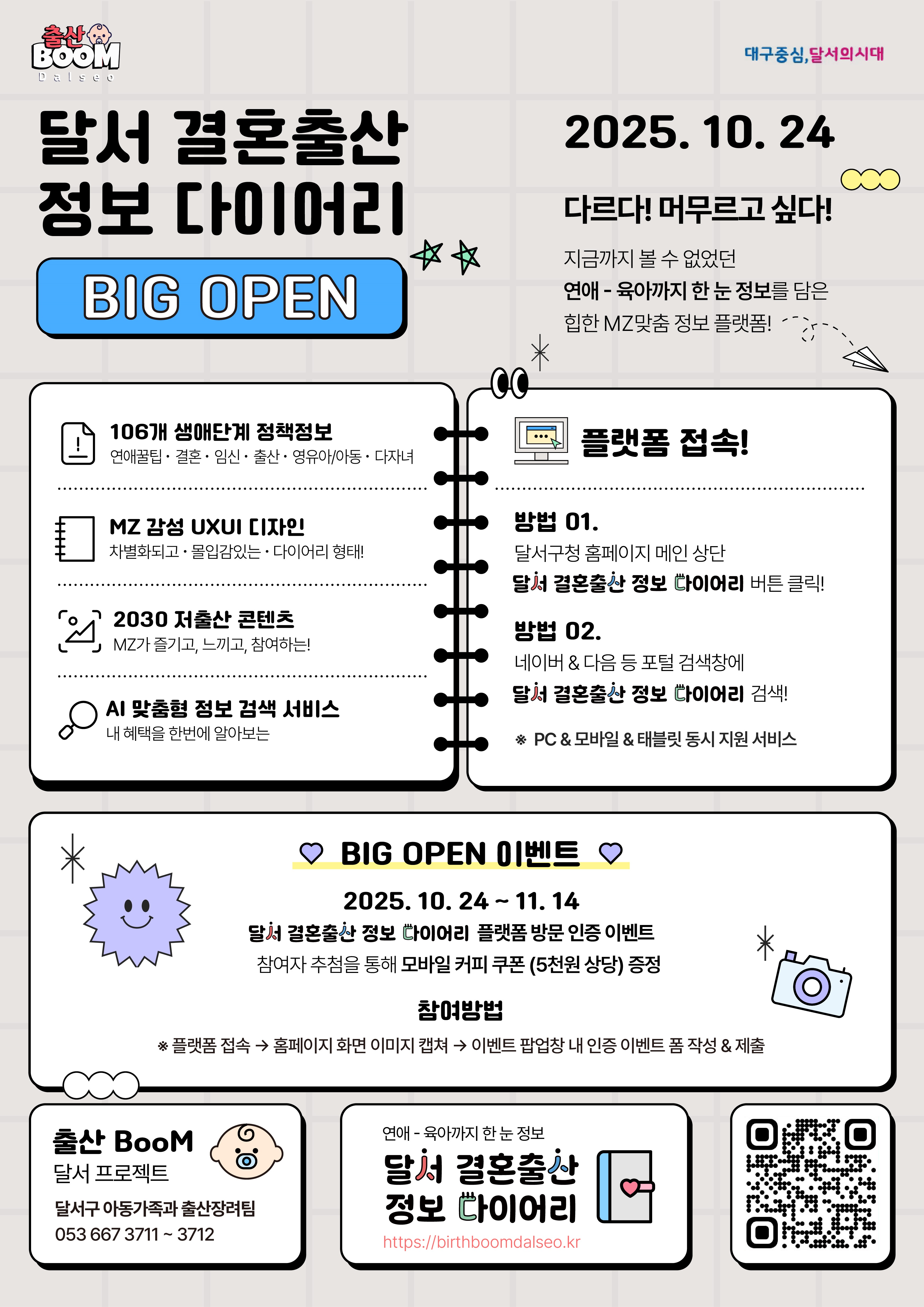 한 눈 정보를 담은「달서 결혼출산 정보 다이어리」플랫폼 BIG OPEN!!