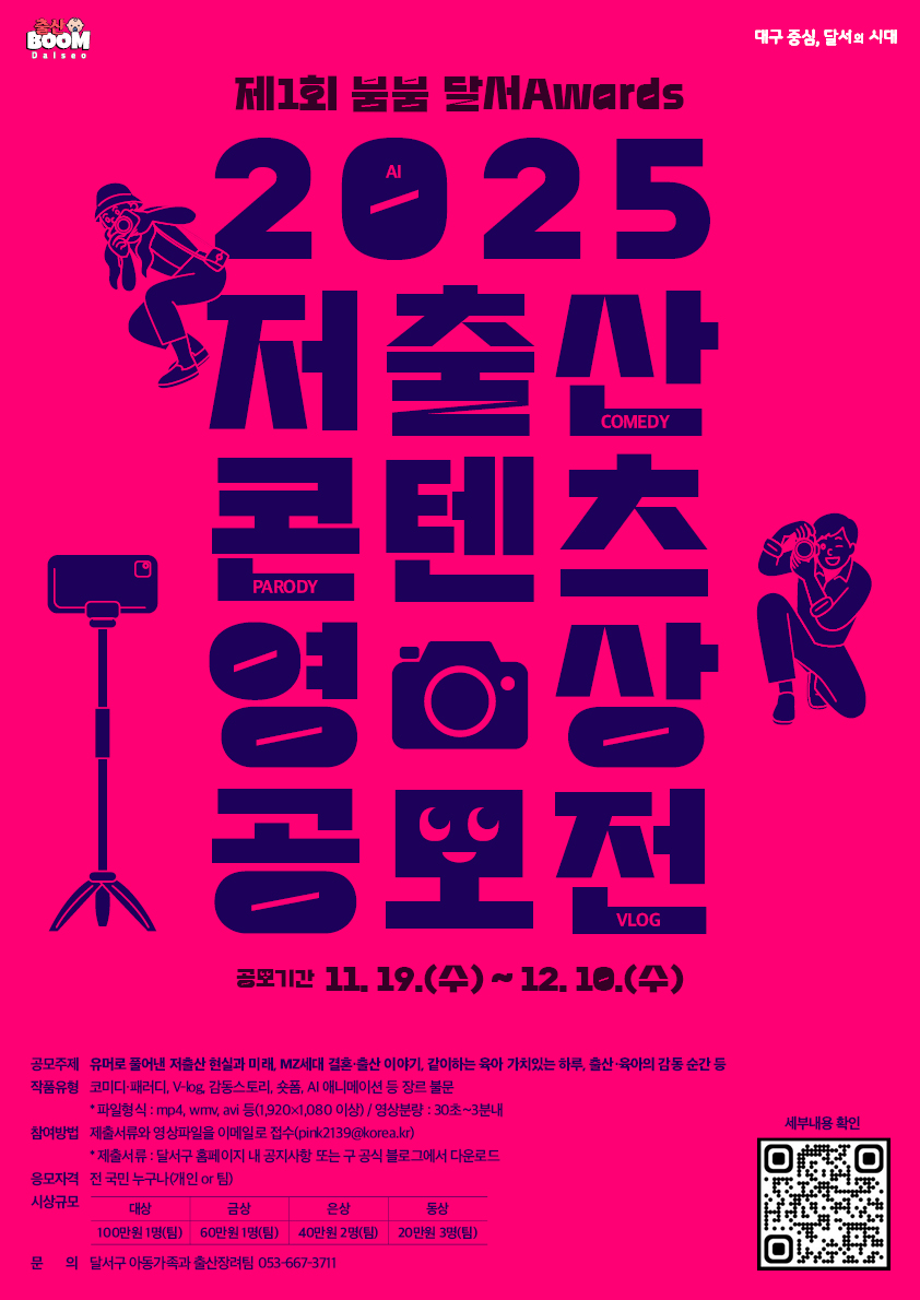 제1회 붐붐 달서어워즈!「출산BooM 달서」저출산 콘텐츠 영상공모전