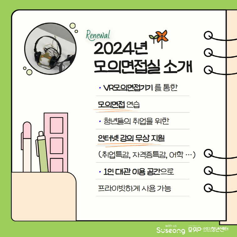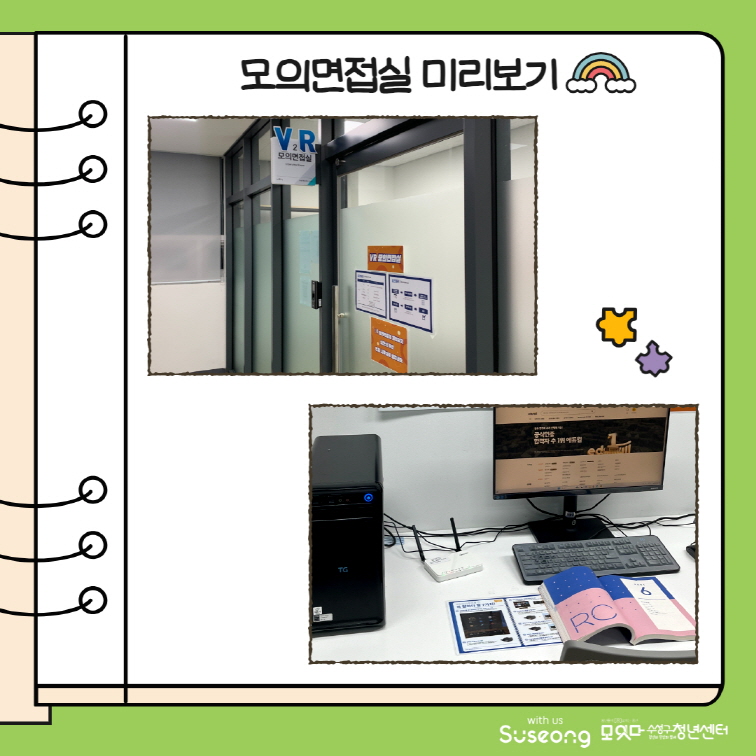 모의면접 연습과 취업&자기개발 관련 인터넷 강의를 무상으로 들을 수 있는 공간은 오직! 수성구청년센터에만 있답니다~