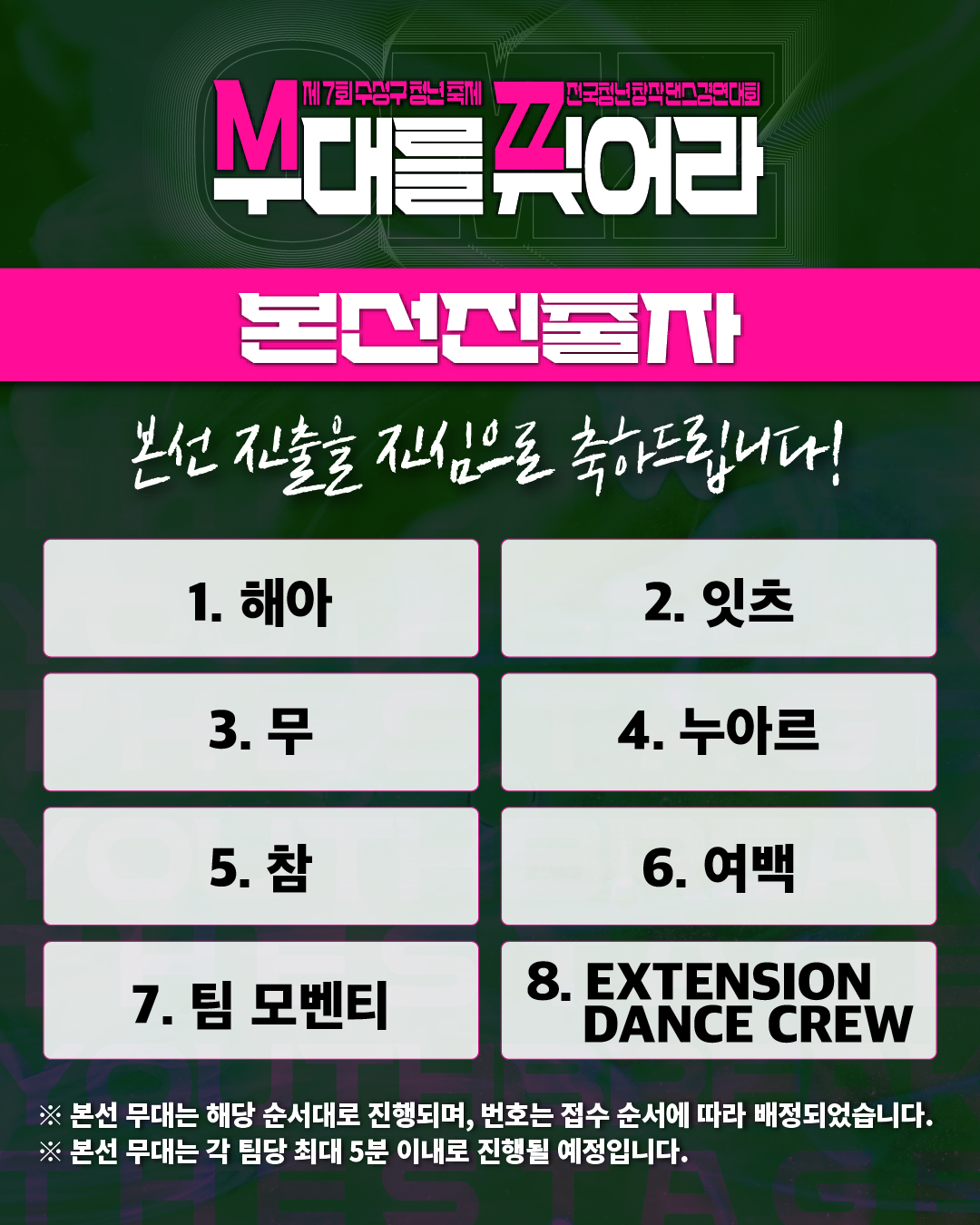 제7회 수성구청년축제 전국 청년 창작댄스 경연대회 본선 진출팀 공지