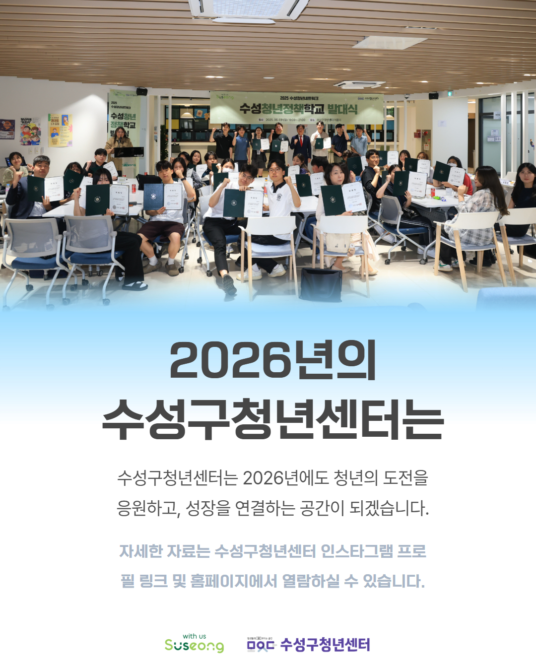 수성구청년센터는 2026년에도 청년의 도전을 응원하며, 성장을 연결하는 공간이 되겠습니다.