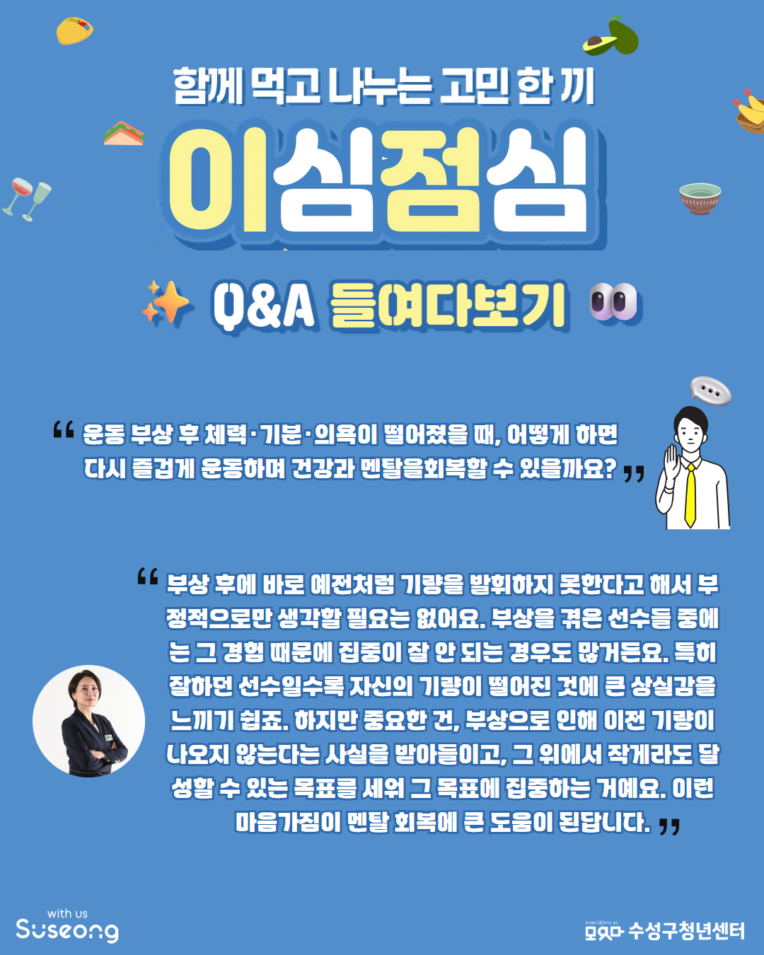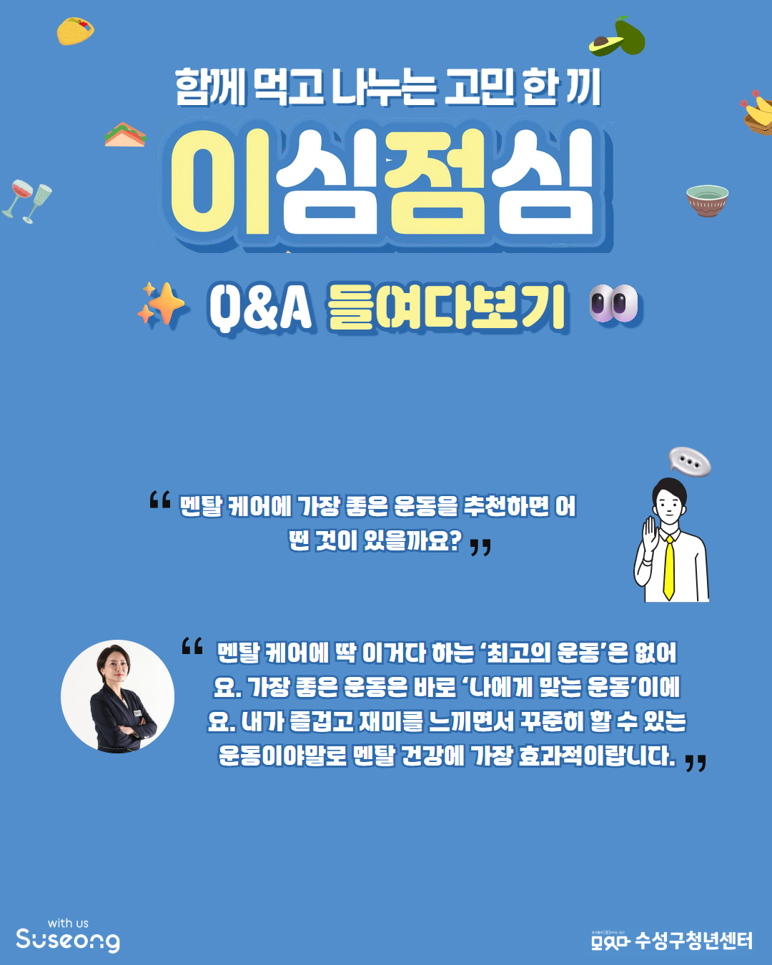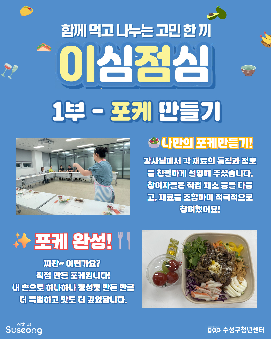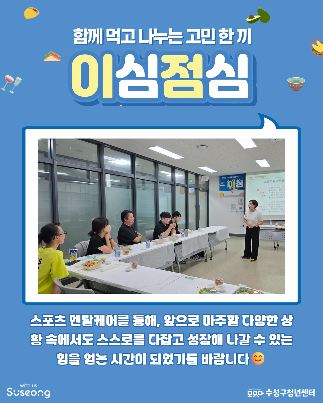 지난 9/17일에 진행된 이심점심 1회차는 몸과 마음을 동시에 챙길 수 있는 특별한 시간으로 꾸며졌습니다.