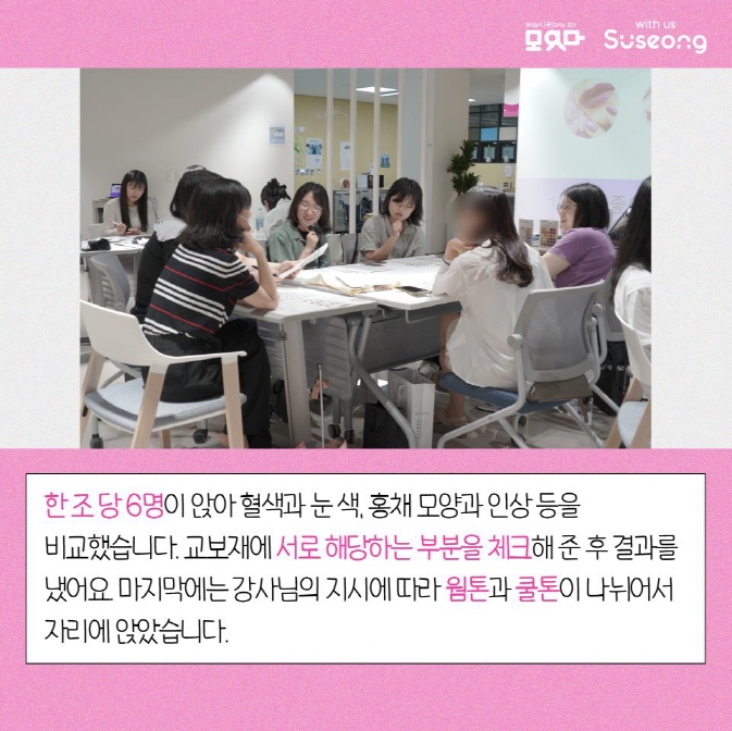 마지막에는 강사님의 지시에 따라 웜톤과 쿨톤이 나뉘어서 자리에 앉았습니다.